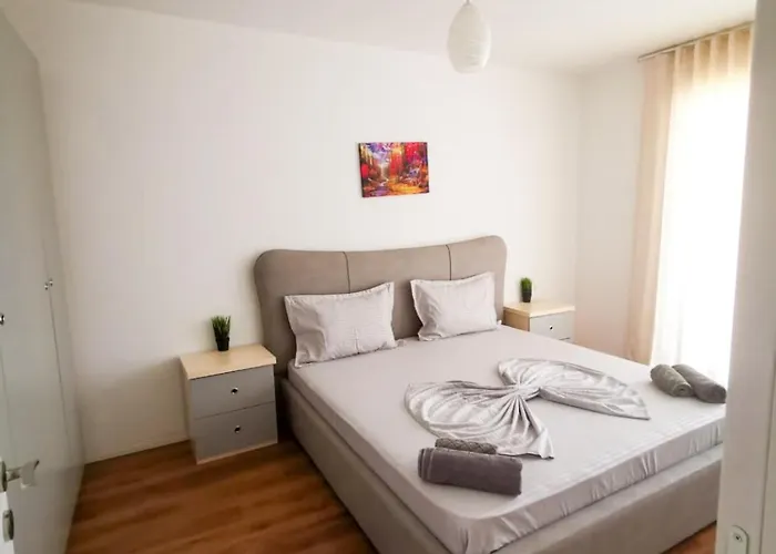 Lägenheten ligger inom 5 minuter med bil från Historiska nationalmuseet. Gästerna kan besöka Tiranas zoo inom 3 km från boendet. Inom 10 minuter med bil från Tirana Luxe Apartments 1 hittar du Skanderbegtorget.